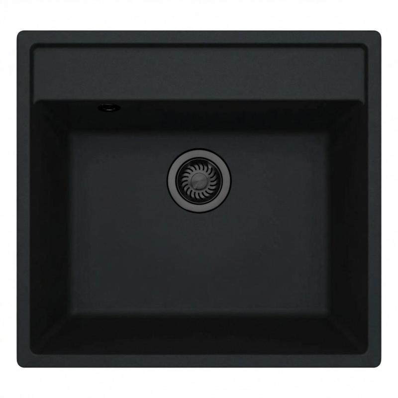 GraniteMy Bremen Granite Sink 53x50 cm Black – Top Mount, Undermount and Flush Mount with Faucet Hole Bank and Gun Metal Plug 1208969971