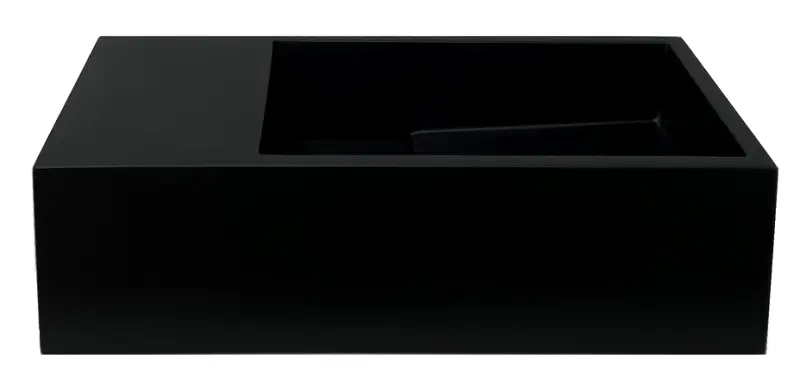 Solid-S Umywalka z litego materiału (Solid Surface) w kolorze matowej czerni, wymiary: szer. 36 x gł. 18 x wys. 10 cm, z pokrywą, model lewostronny bez otworu na baterię, nr kat. 1208954157